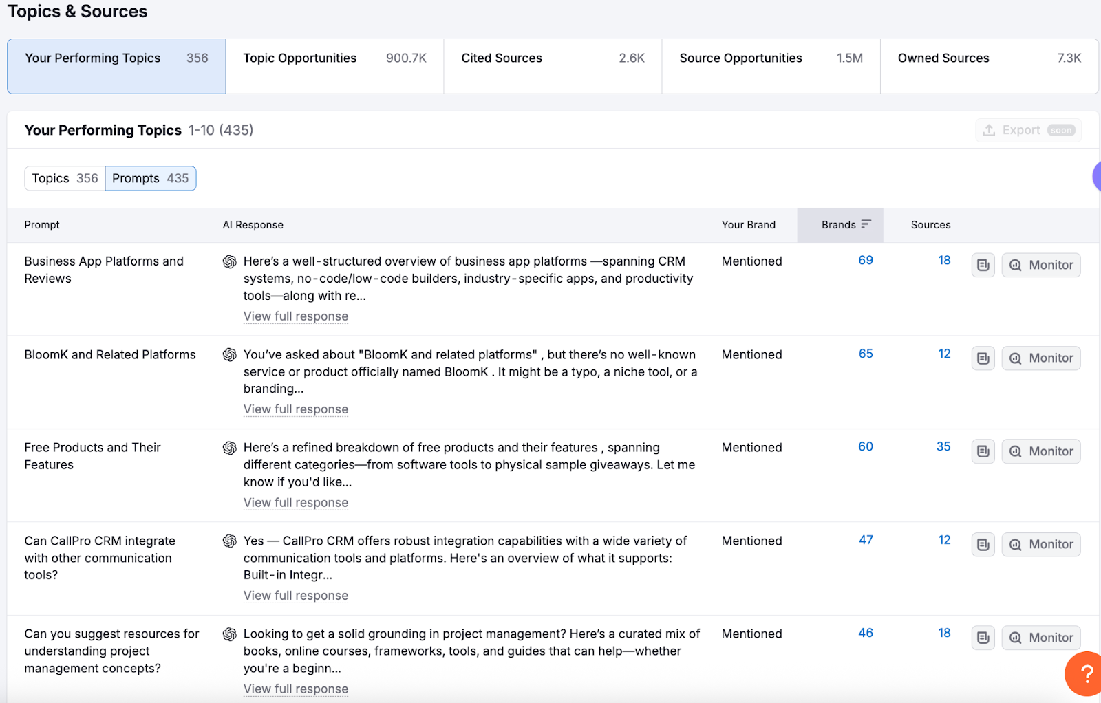 AI mentions are references to your brand within the main AI response, which can originate from the model’s training data, your own web content, or third-party web content.