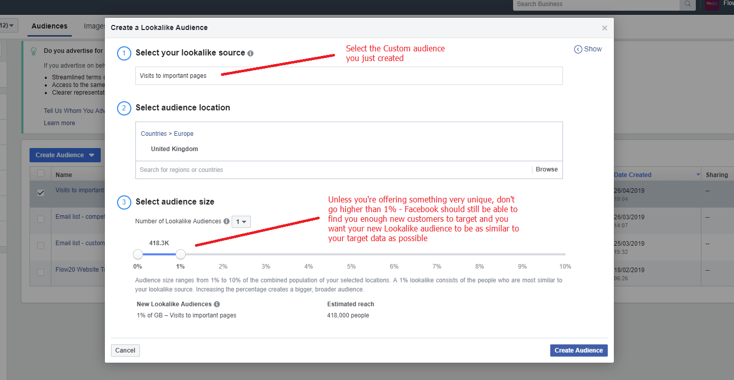 Essentially, you are putting Facebook's amazing computing power as well as the incredible level of data it has on us to find new customers (your new Lookalike audience), just like the ones you selected. In fact, what is incredible is that sometimes, Facebook's lookalike audience may actually outperform your very own, real customer data!